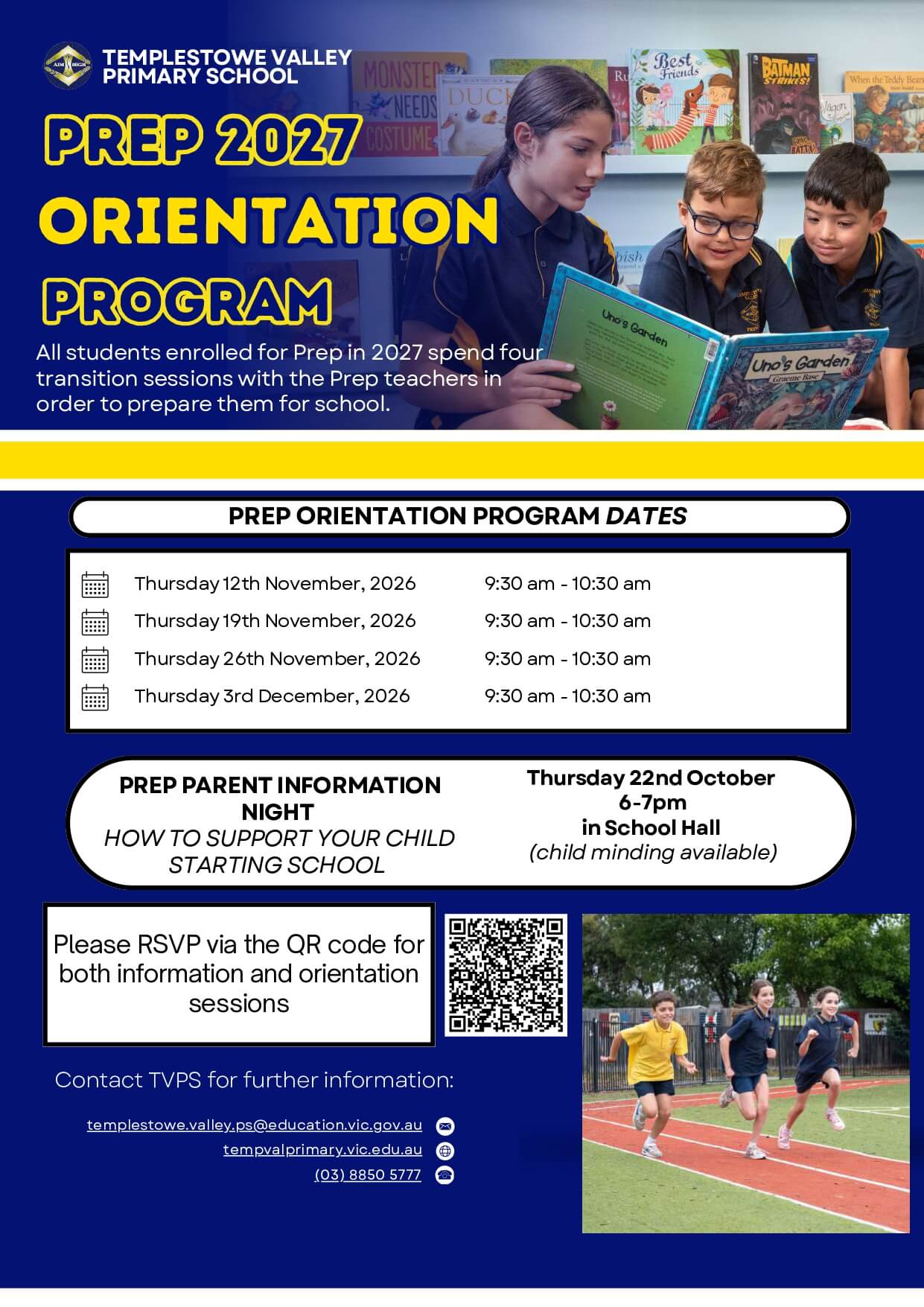 All students enrolled for Prep in 2027 will participate in four transition sessions with our Prep teachers to help prepare them for a confident and successful start to school.